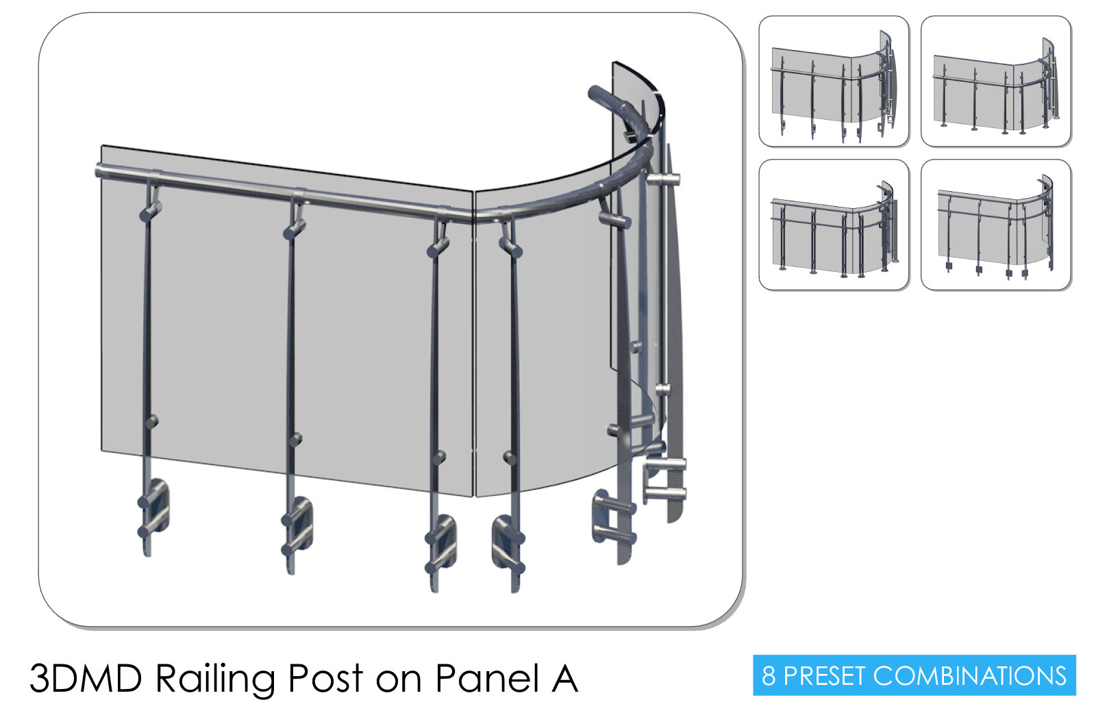 3DMD Railings are archicad object tools. You can simple draw a 3d polyline both 2d and 3d window. You can create curved and sloped path. There are many parameters for post, panel, cable, handrail; you can create you own rail. An option for list allow you to have the railing straightened in the schedule also with quantities for each elements of the railing. You can quickly manage in 2d/3d windows the position and visibility of posts and cables/panels.