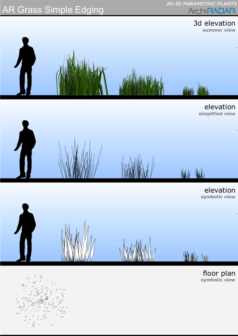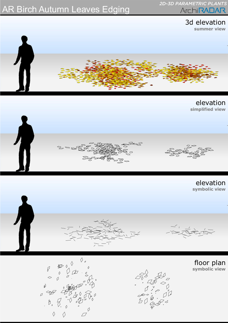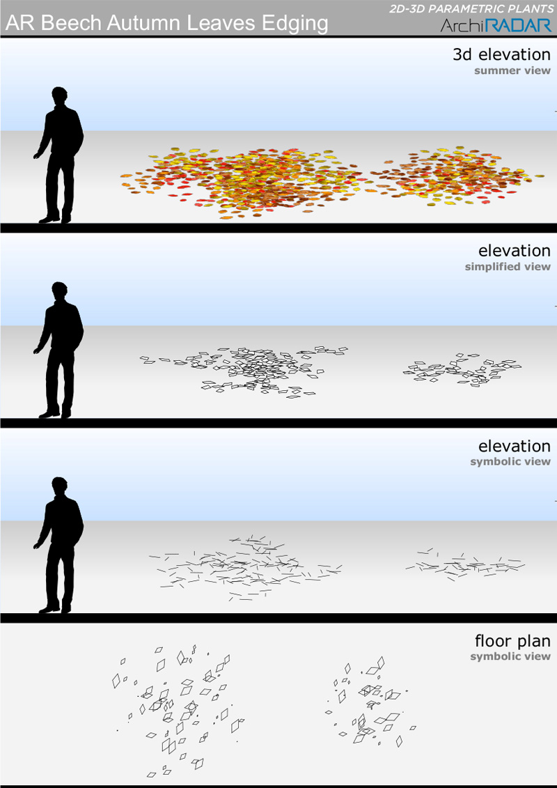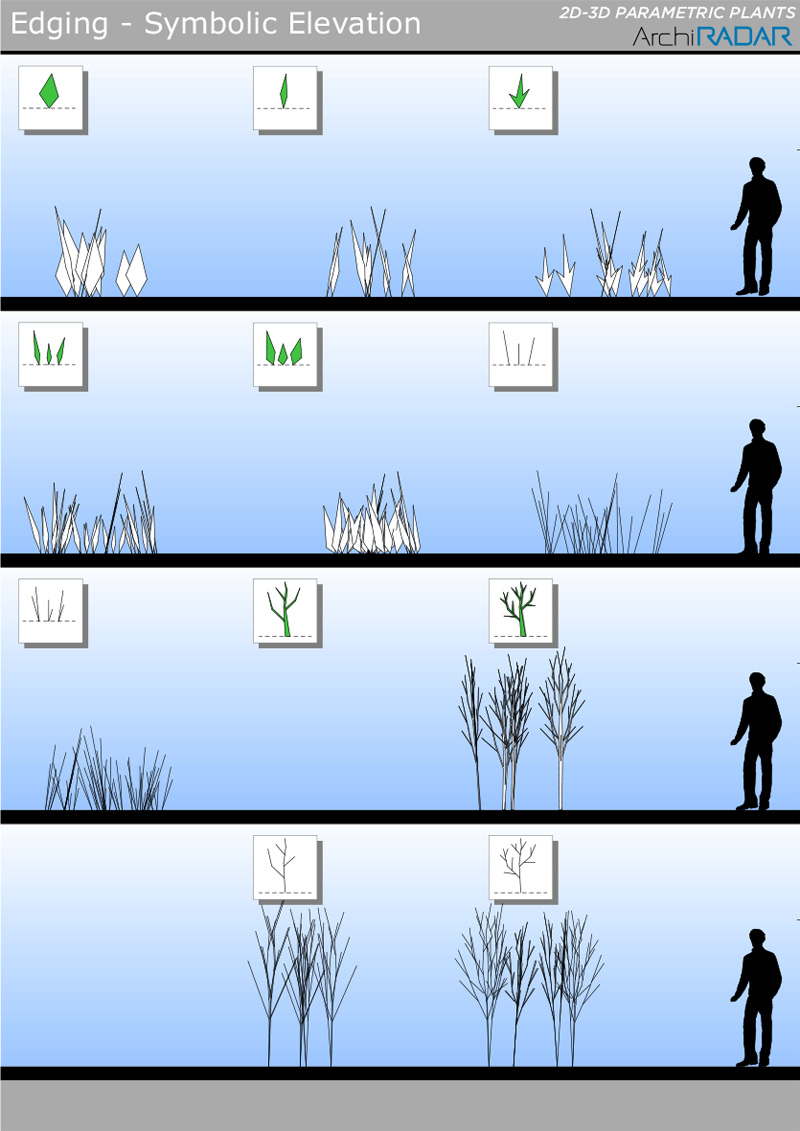 The objects are made with a low polygon quantity, they have a real growing factor according to the size and a corresponding symbolic view in elevation.