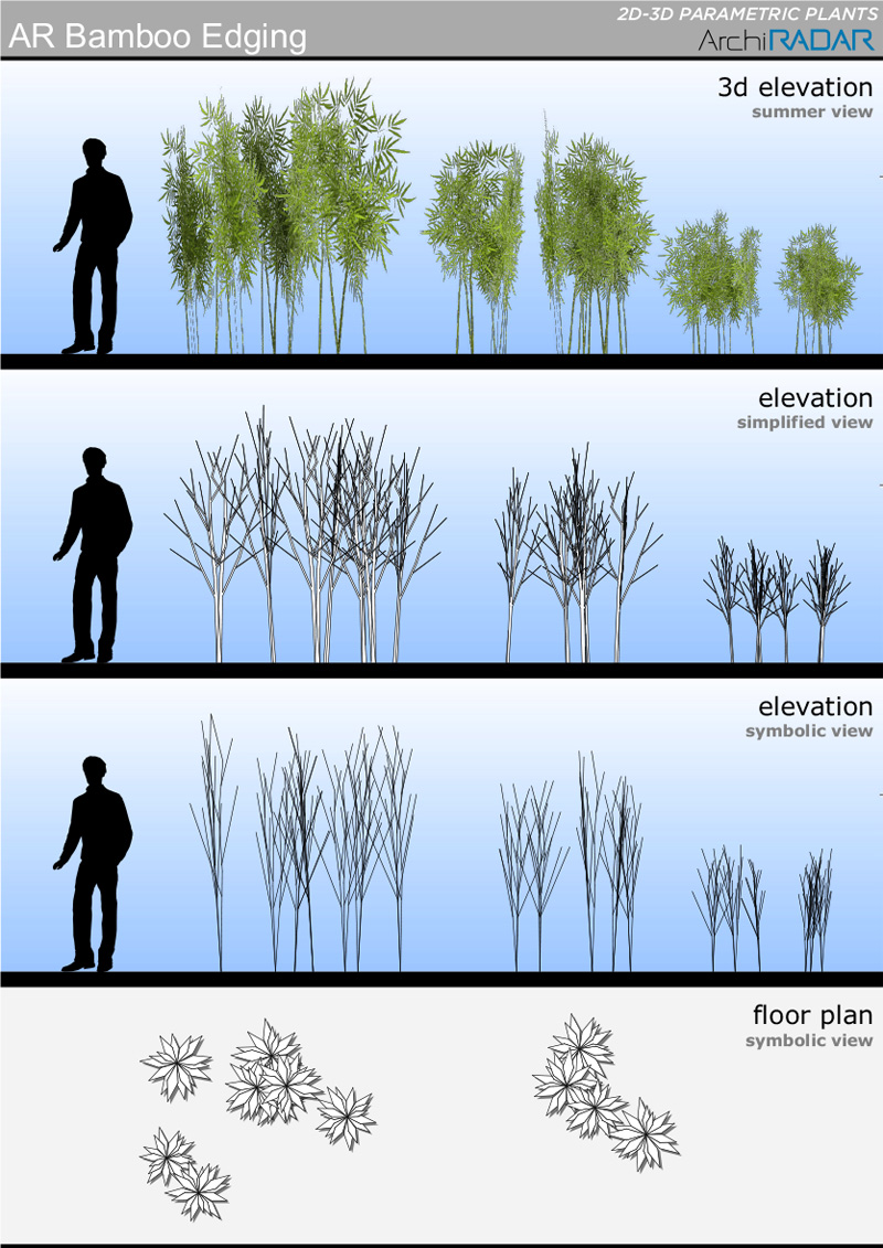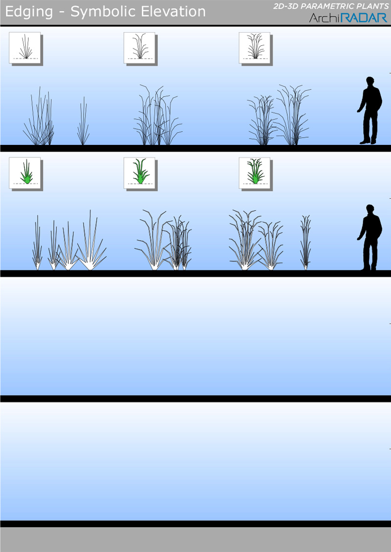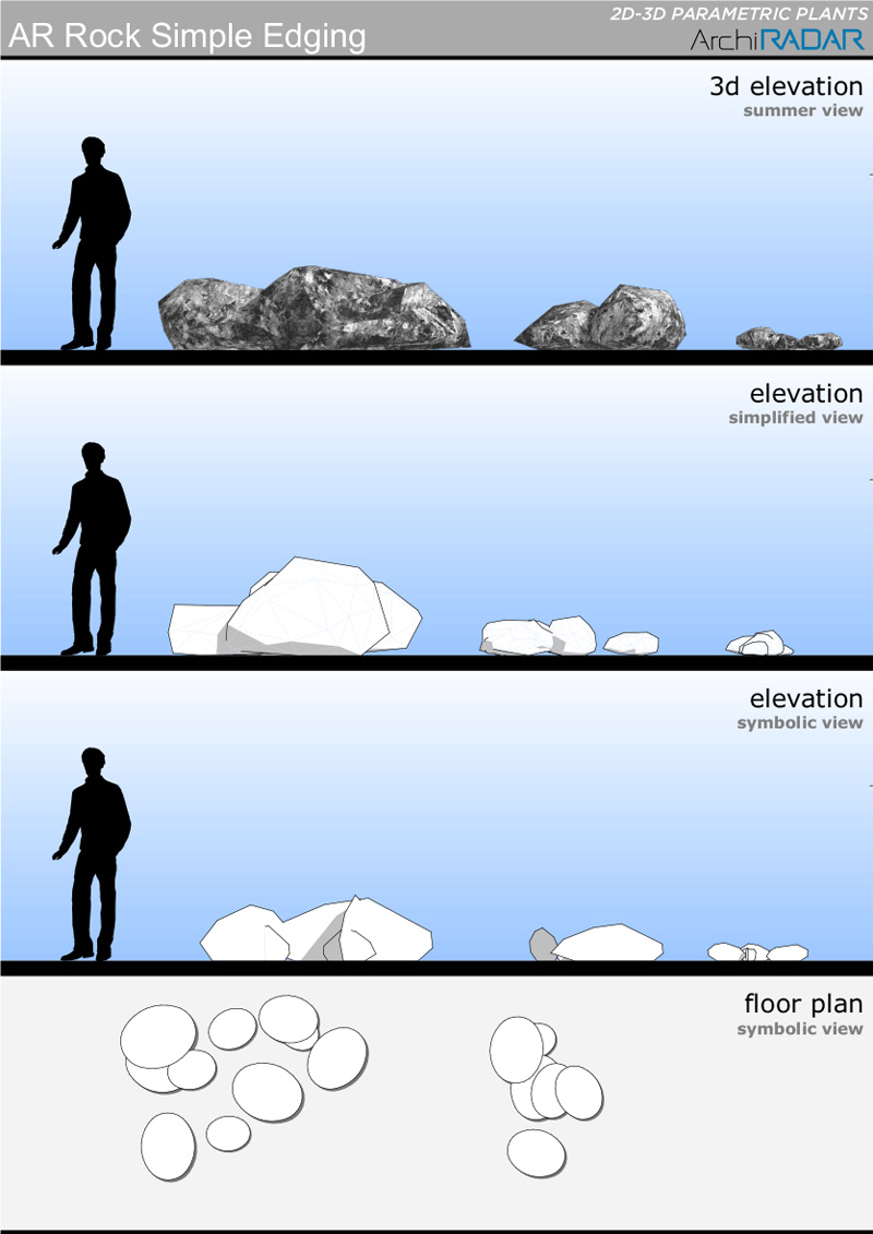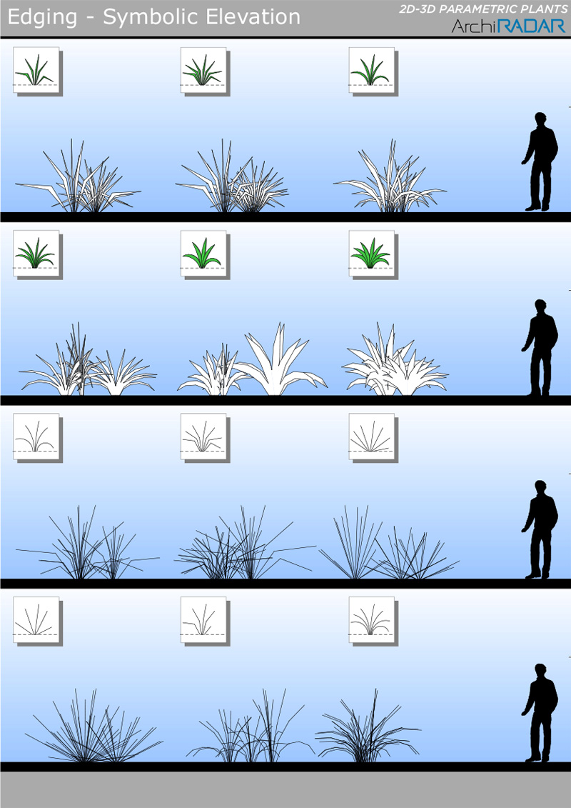 The objects are made with a low polygon quantity, they have a real growing factor according to the size and a corresponding symbolic view in elevation.