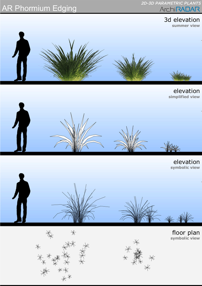 - 1 Phormium edging (Phormium)