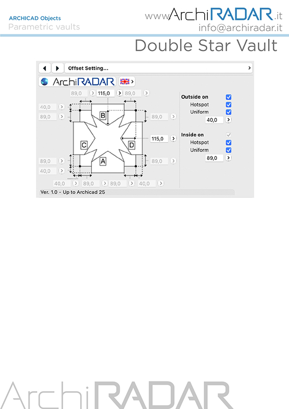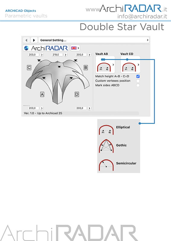 The ArchiRADAR parametric double Star vault have been conceived to speed up the designer's work, thanks to the possibility of managing many parameters.