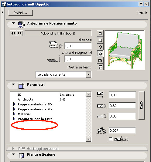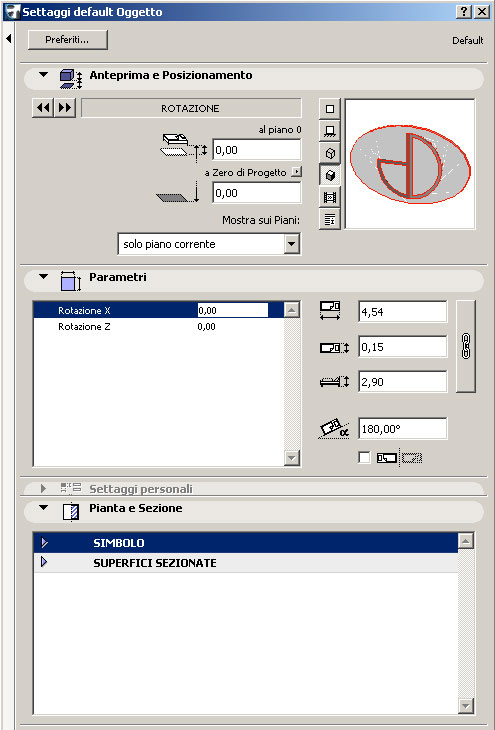 Il nostro nuovo oggetto sarà immediatamente disponibile nelle librerie caricate di ArchiCAD e presenterà solo due comandi nella lista dei parametri: le due rotazioni che abbiamo inserito.