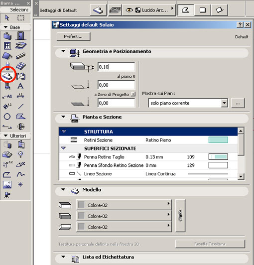 Selezioniamo lo strumento “Solaio” e gli diamo lo spessore che vogliamo abbia il nostro logo-insegna