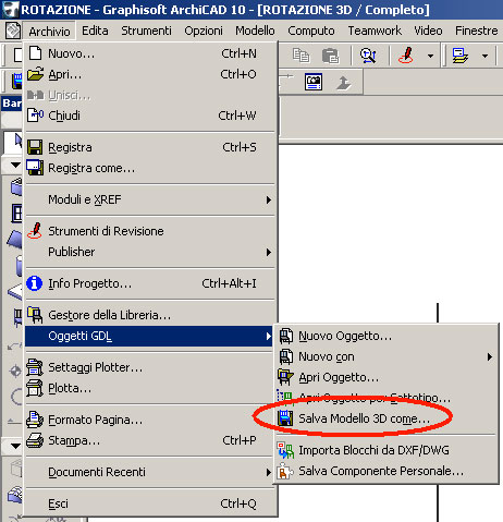 Adesso andiamo direttamente sul menu “Archivio – Oggetti GDL – Salva Modello 3D come…” e lo salviamo come oggetto con “Testo GDL editabile”