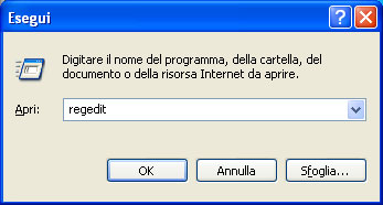 Ènecessario avvisare l'utente che l'accesso al Registro di Sistema di Windows, deve essere effettuato con estrema cautela. Modifiche errate al Registro potrebbero danneggiare gravemente il sistema, per cui effettuate l'operazione di attivazione descritta di seguito solo in caso possediate il livello di conoscenza necessario. È consigliabile effettuare un backup dei dati presenti sul disco prima di apportare qualsiasi modifica. Graphisoft e lo staff di ArchiRADAR non si assumono alcuna responsabilità sulla perdita di dati derivanti dall'uso improprio di questo comando. Detto questo, procediamo all'attivazione. In Windows, cliccare sul menu Start (avvio) e successivamente su Esegui. Nel dialogo che appare digitare "regedit" e cliccare sul pulsante OK (oppure premere il tasto invio).