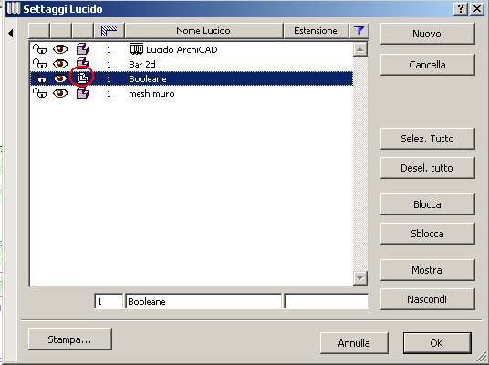Salviamo la copia in un lucido appositamente creato per le Operazioni con gli Elementi Solidi (Booleane) in cui spuntiamo l'opzione che ne impedisce la visualizzazione nella finestra 3d in modo da poter apprezzare meglio il risultato ottenuto.