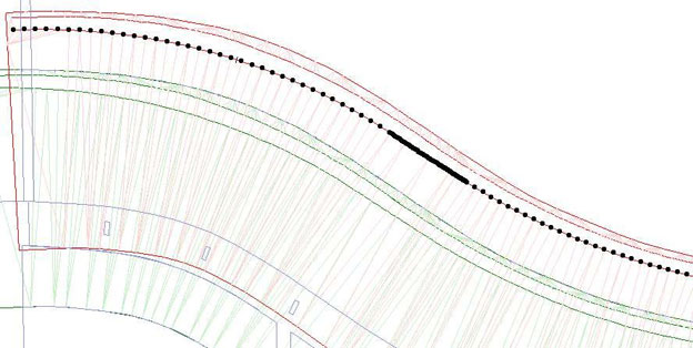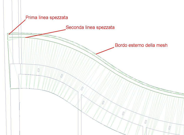 Adesso possiamo iniziare a disegnare la nostra mesh contenuta tra la linea di attacco a terra del muro e la linea di proiezione del coronamento del muro.