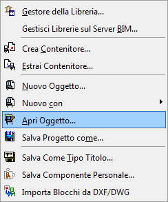 In ArchiCAD, dal menu Archivio, selezioniamo il comando Librerie e Oggetti e quindi Apri oggetto