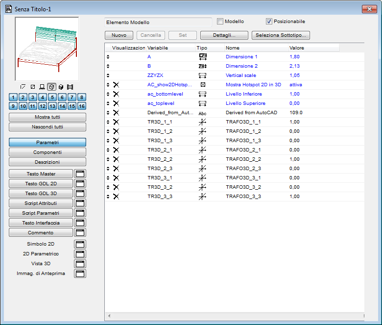 A questo punto potremmo accontentarci di quanto fatto finora e salvare il nostro nuovo elemento, ma adesso comincia il reale lavoro per trasformarlo in un vero oggetto di libreria parametrico di ArchiCAD.
