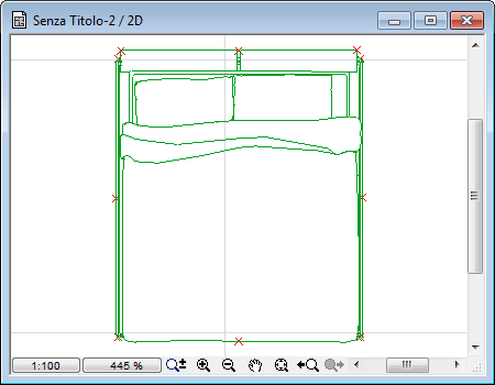 In questa finestra di disegno sono abilitati tutti gli strumenti bidimensionali di ArchiCAD e con gli Hotspot possiamo aggiungere al simbolo dei punti notevoli, ossia i punti che ci consentiranno di posizionare e spostare comodamente l'oggetto in pianta.