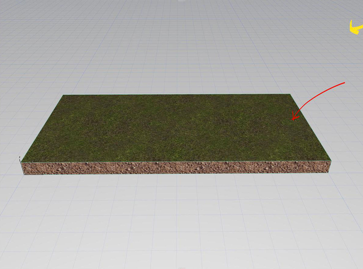 • Applicare adesso il materiale Erba 3D alla superficie desiderata e richiamare la vista 3D.