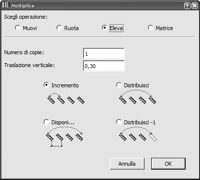 6.Selezionate il terreno e createne una copia, ad una quota leggermente superiore. Il sistema più semplice può essere l'utilizzo del comando Moltiplica, scegliendo l'opzione Eleva (ad esempio di 30 cm). Per distinguere le due Mesh, che planimetricamente coincidono, potete spostare un nodo della copia in un punto che non influisce sul tracciato stradale.