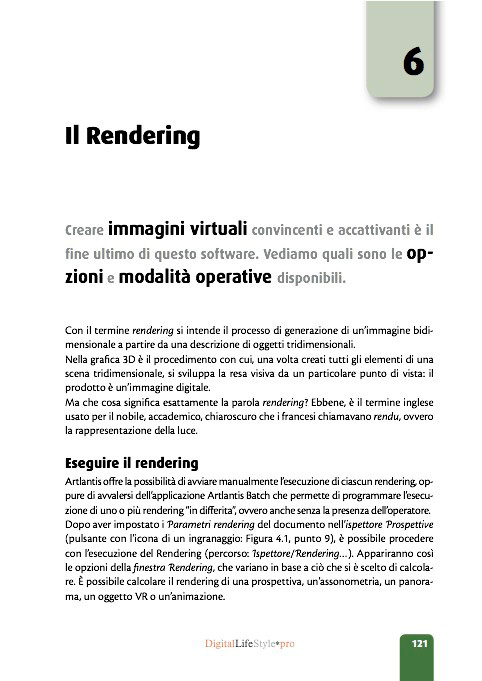 In questa edizione abbiamo voluto inserire molti tutorial e suggerimenti utili per il lavoro quotidiano del renderista, con esempi pratici su come realizzare un ottimo render fotorealistico in poco tempo. Questo manuale si rivolge non solo a chi non conosce il programma e vuol riuscire a padroneggiarlo in modo professionale in poco tempo, ma anche a chi il programma già lo conosce e ne vuole approfondire gli argomenti avanzati oppure apprendere qualche trucco per migliorare la resa delle proprie immagini.