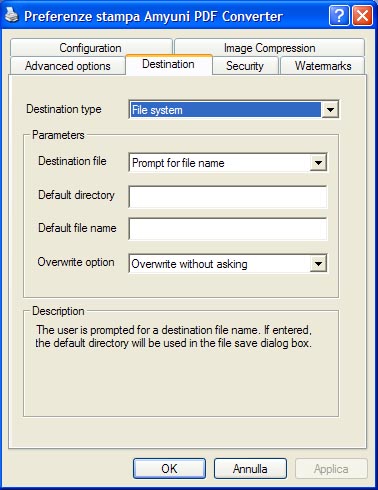 Benché le opzioni presenti non sono direttamente utili al fine della stampa vi raccomando d'impostare l'opzione Overwrite option su Confirm before overwriting.