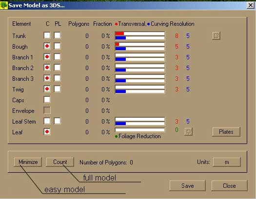 Salvate il modello in formato 3ds. Se il modello dovrà essere visualizzato con il massimo dettaglio premete COUNT, altrimenti si dovrà scegliere MINIMIZE che genererà un modello più leggero.