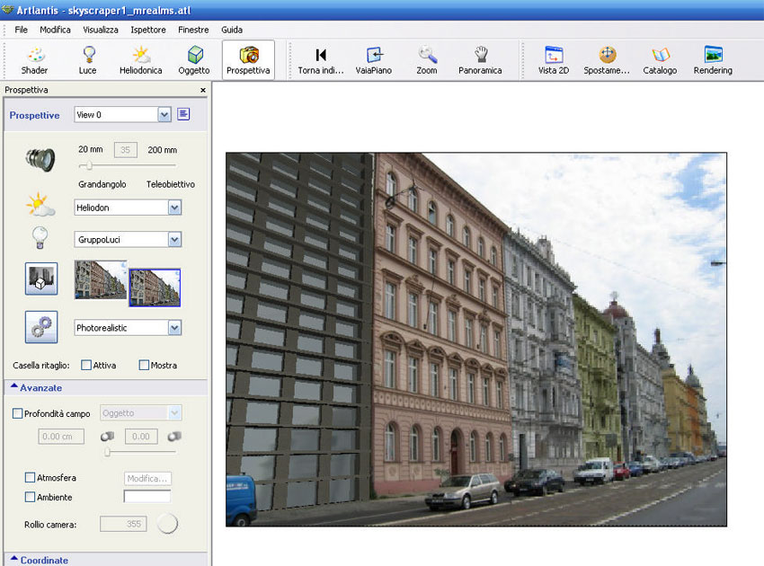 NON PREOCCUPATEVI SE PARTE DEL MODELLO COPRE PARTE DELL’ IMMAGINE (nel caso in esempio, l'auto in primo piano sulla sinistra). Vedremo più avanti come ovviare a questo.