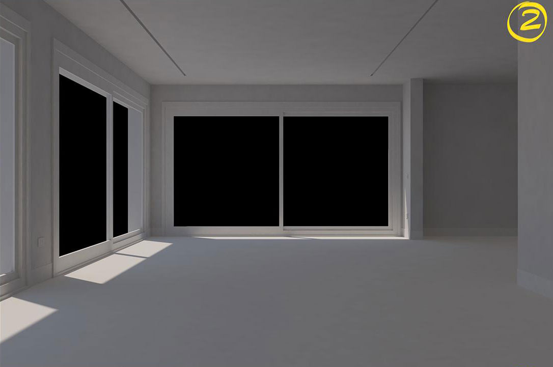 Dall'immagine 5 all'immagine 8 notate invece come la luce aumenta ma non grazie al Render Fisico (che è di supporto per altro). Abbiamo dovuto aumentare l'intensità a 200. Successivamente sono stati inseriti dei pannelli luminosi alle finestre per aumentare la luminosità nella scena.