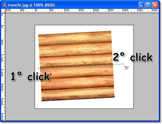 Per indicare l'entità della rotazione, è sufficiente tracciare una linea che indichi al programma l'orientamento dell'elemento da raddrizzare. Non importa se l'allineamento scelto è orizzontale o verticale, l'importante è seguire, con la nostra linea, l'orientamento attuale dell'immagine. Se necessario, è possibile correggere il posizionamento della linea, semplicemente trascinando gli estremi, senza cambiare strumento.