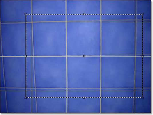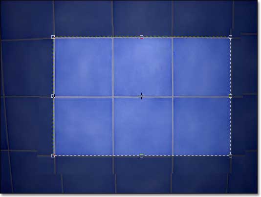 Trascino le maniglie, fino a far coincidere le fughe delle piastrelle con le linee della griglia. Nel corso di questa operazione non è possibile cambiare strumento né utilizzare le palette (es. Navigatore), ma si possono comunque utilizzare vari comandi di spostamento e di zoom, sia da menu che da tastiera (comodo il "panning" attivato semplicemente dalla barra spaziatrice, ma anche lo zoom ottenuto con Alt e la rotella del mouse).