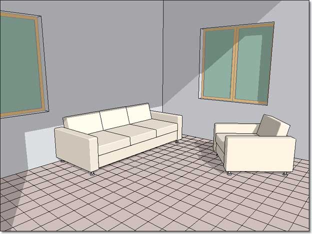 Vediamo che al massimo, le piastrelle più vicine, non sono più grandi di un quindicesimo circa del lato lungo. Di conseguenza non ci dovrebbe servire una piastrella di dimensione maggiore di 53 pixel di lato (800 diviso 15). La piastrella riportata sopra, l'avrete forse riconosciuta, fa parte della "Libreria italiana" fornita con ArchiCAD e, se andate a controllare, vedrete che la sua dimensione è 100x100 pixel, più che sufficiente per il nostro rendering e, anzi, adatta anche per uno di dimensione doppia rispetto al nostro.