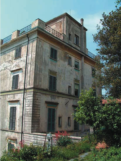 L'immagine di partenza ci mostra la difficoltà di realizzazione: l'edificio è per un lato addossato ad una collina, e questo ci complica non poco il lavoro, infatti questa è l'unica immagine integrale che possiamo scattare alla facciata. Invece, nei raddrizzamenti prospettici sarebbe opportuno scattare foto da lontano e quanto più centrali possibili, soprattutto se si tratta di un edificio con diversi piani fuori terra, in modo da ottenere foto più dritte possibile, in cui i piani (terzo, quarto ecc..) non risultino schiacciati rispetto al punto di vista. Nel caso in esame questo non è possibile e quindi saremo costretti a rimontare il tutto a mo' di puzzle ...