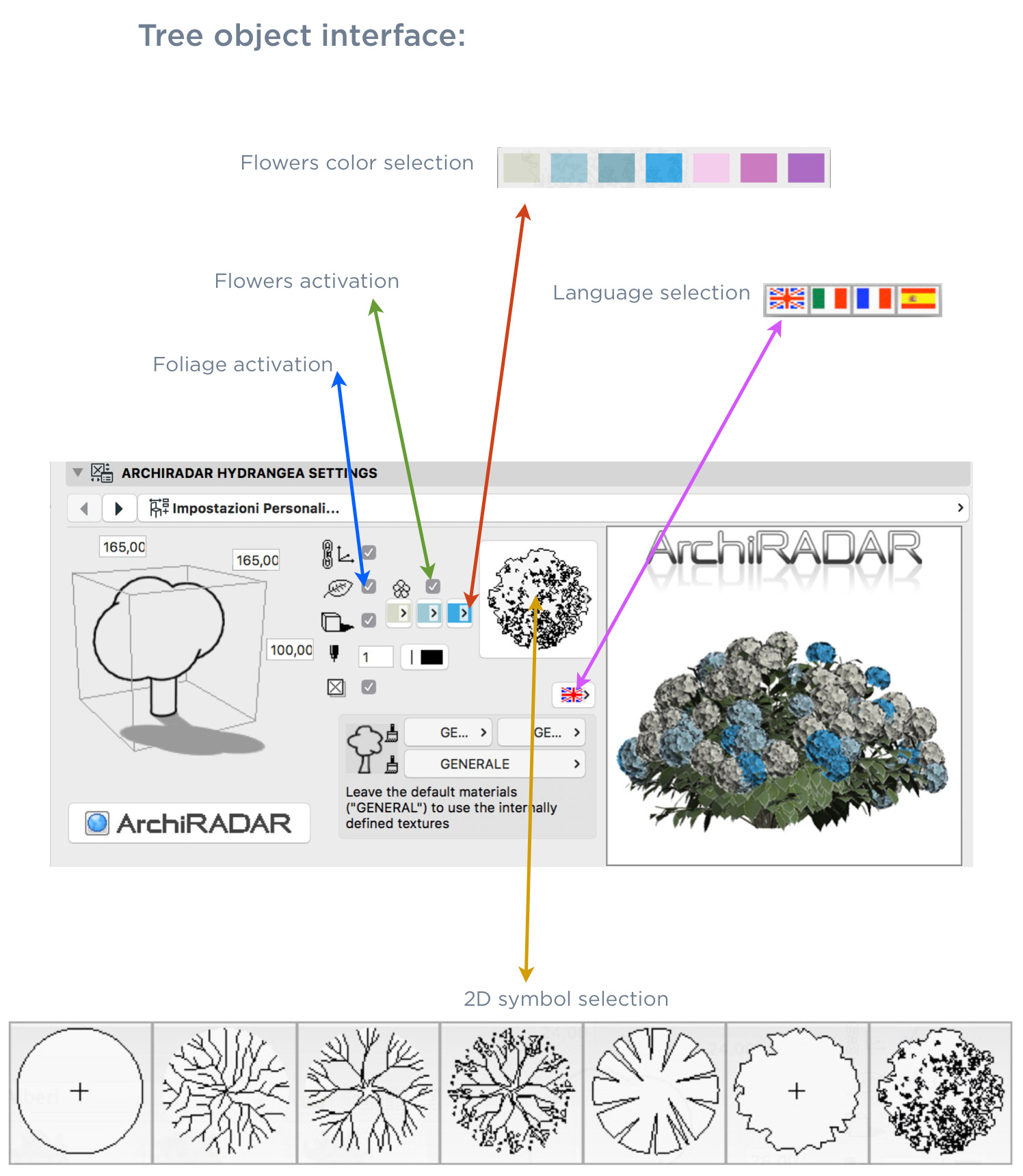 Infine, per ogni specie c'è un oggetto "Pianta Random" che permette, con un semplice click, di inserire nel progetto un albero sempre diverso per evitare le ripetizioni.