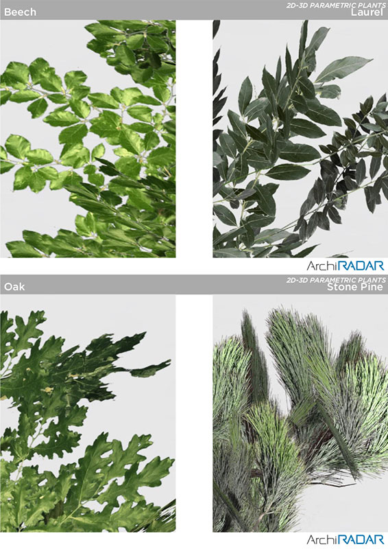 12 Modelli 3D di alberi diversi, compatibili con ArchiCAD 16 o superiore e ottimizzate per CineRender.