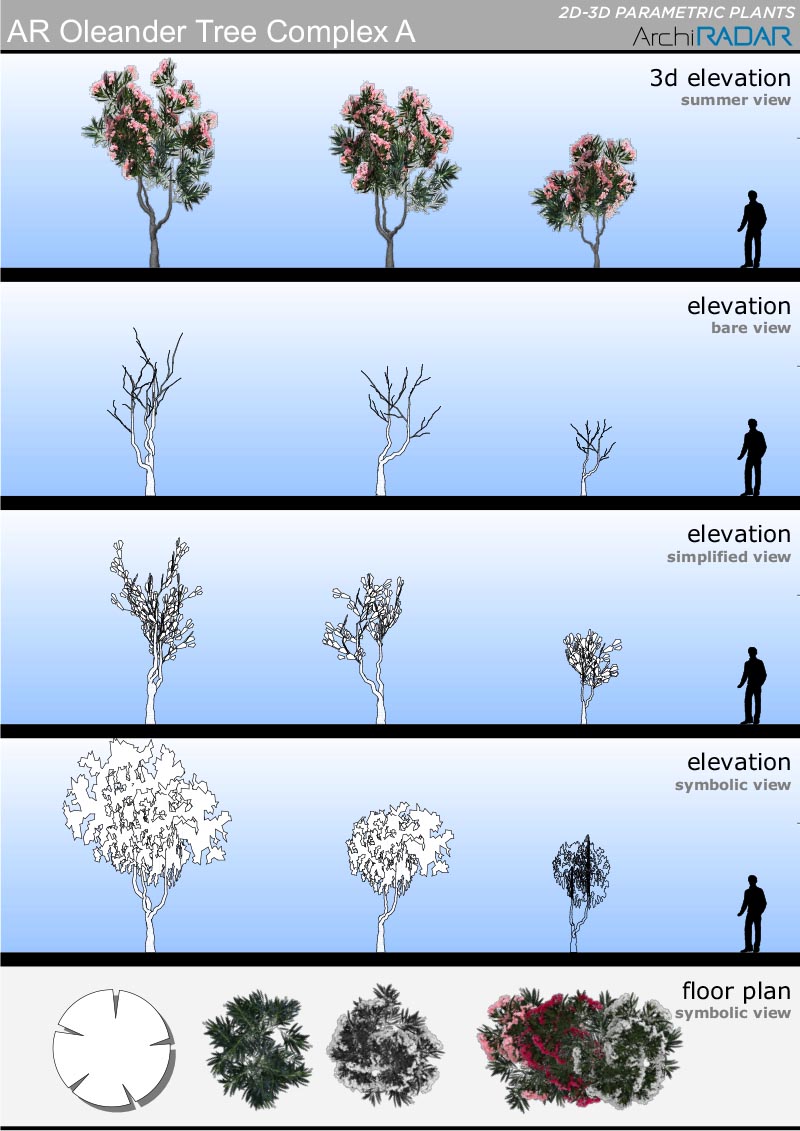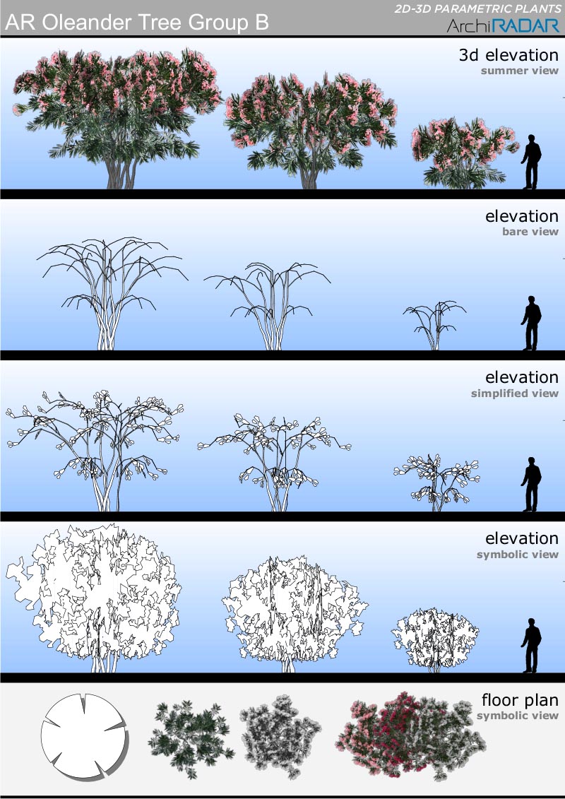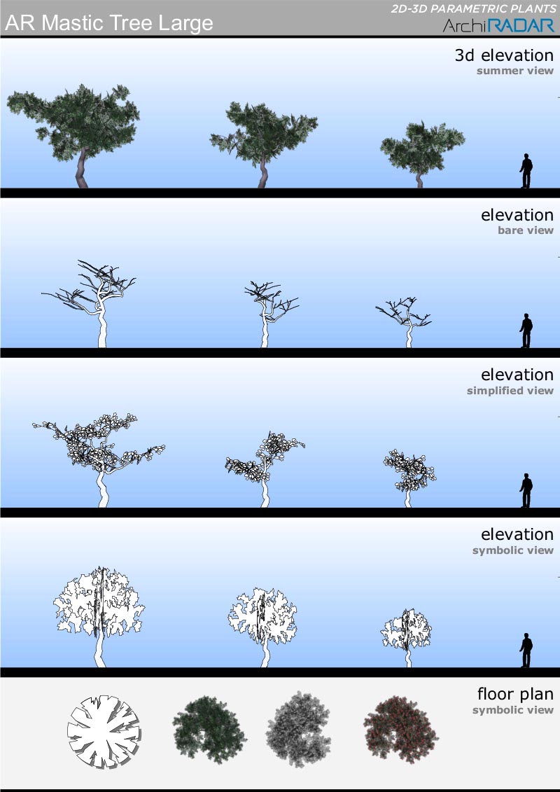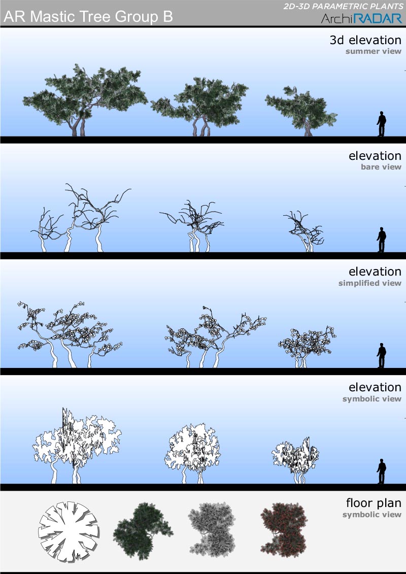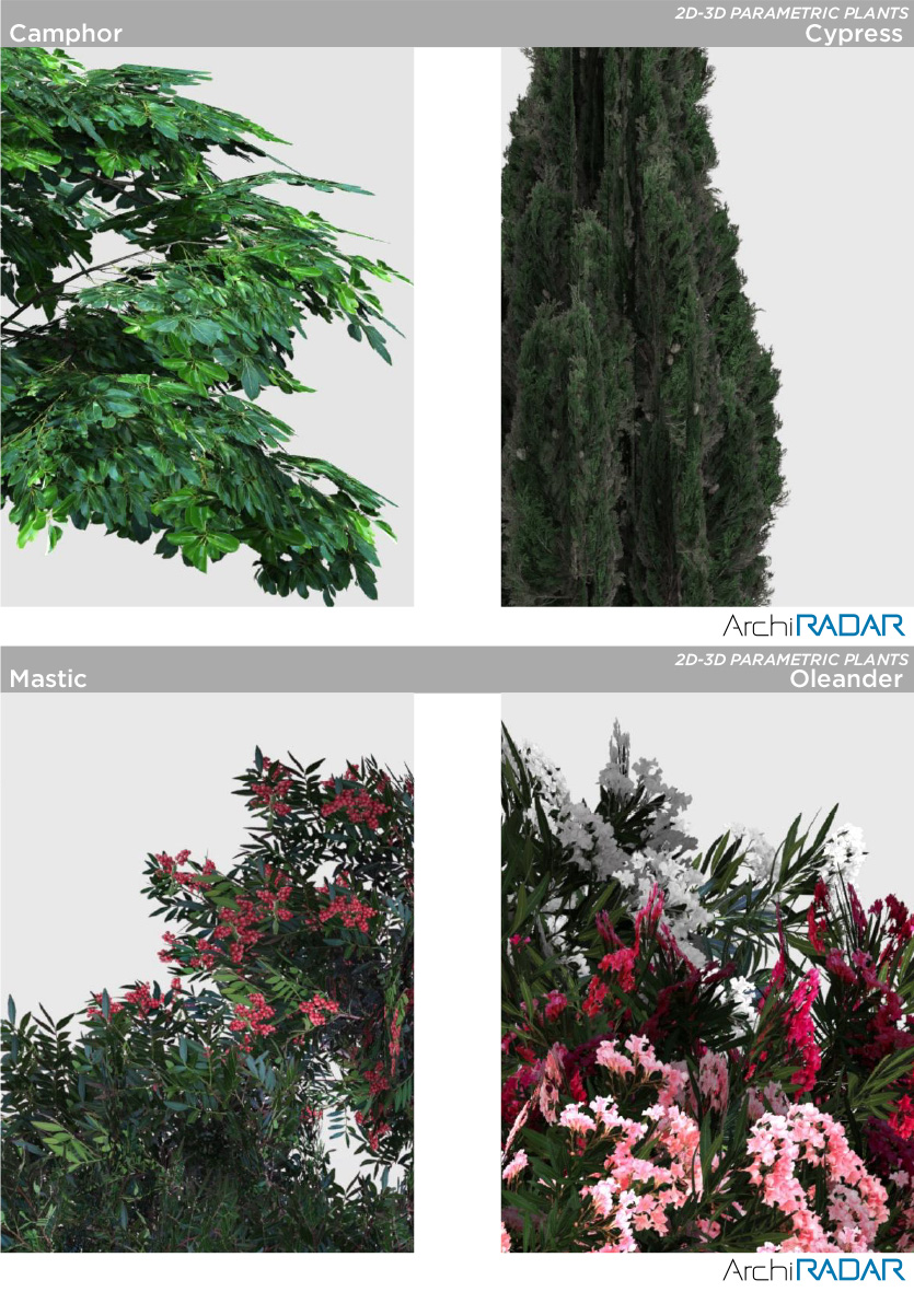 18 Modelli 3D di alberi diversi, compatibili con ArchiCAD 16 o superiore e ottimizzate per CineRender.