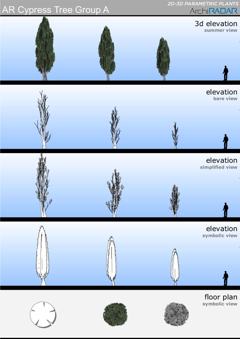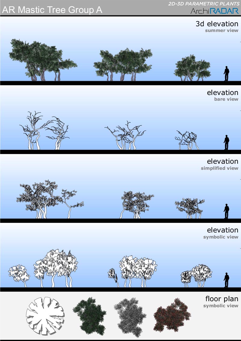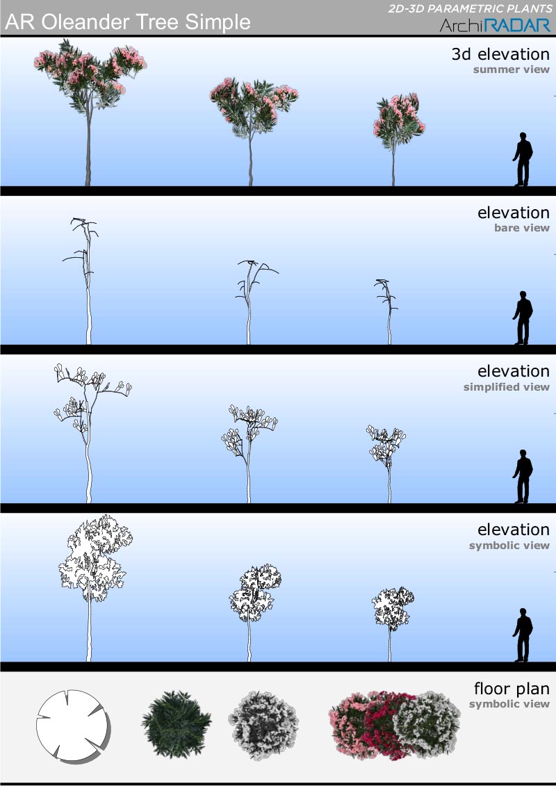Gli oggetti sono realizzati con un basso numero di poligoni, hanno un fattore di crescita reale in base alla dimensione e inoltre hanno una corrispondente vista simbolica semplificata in prospetto e sezione.