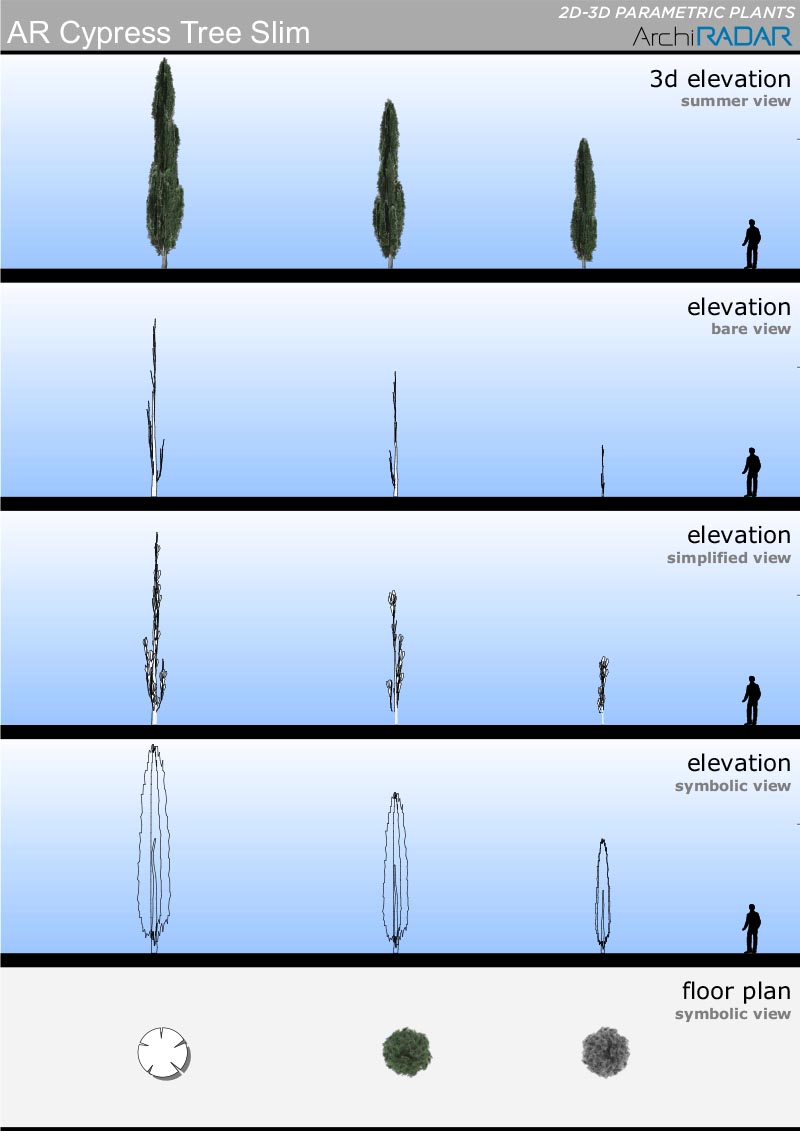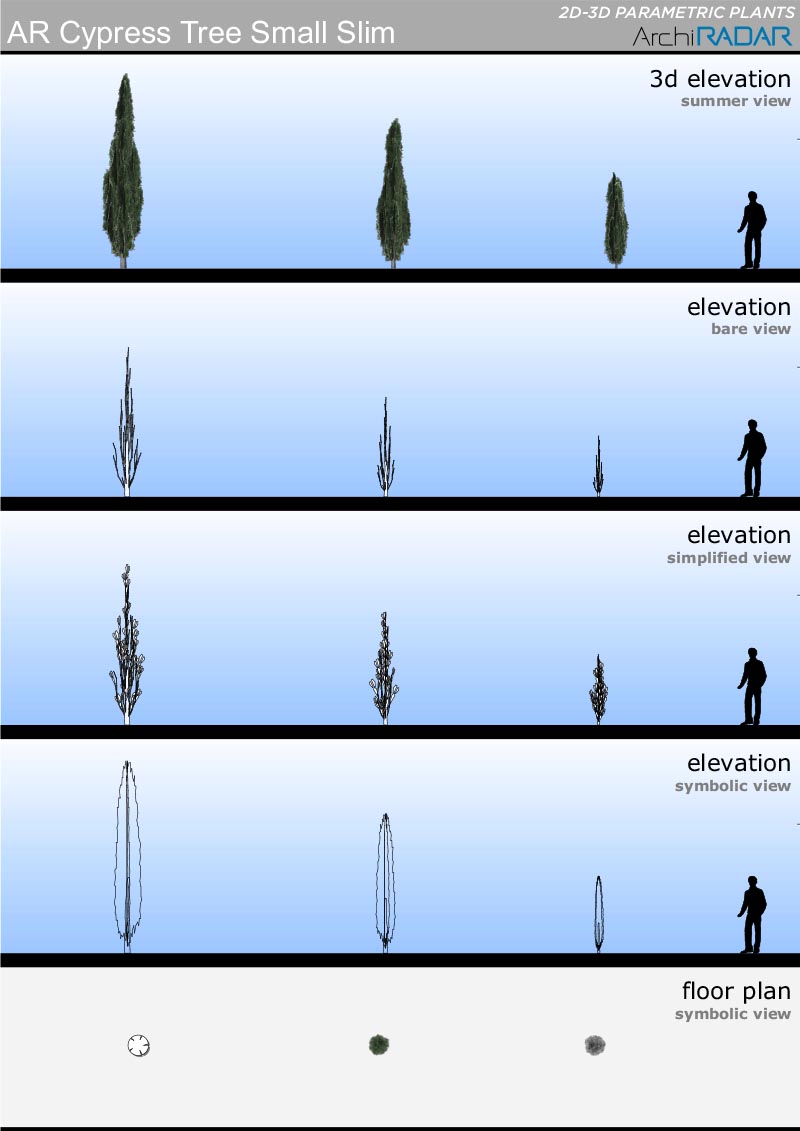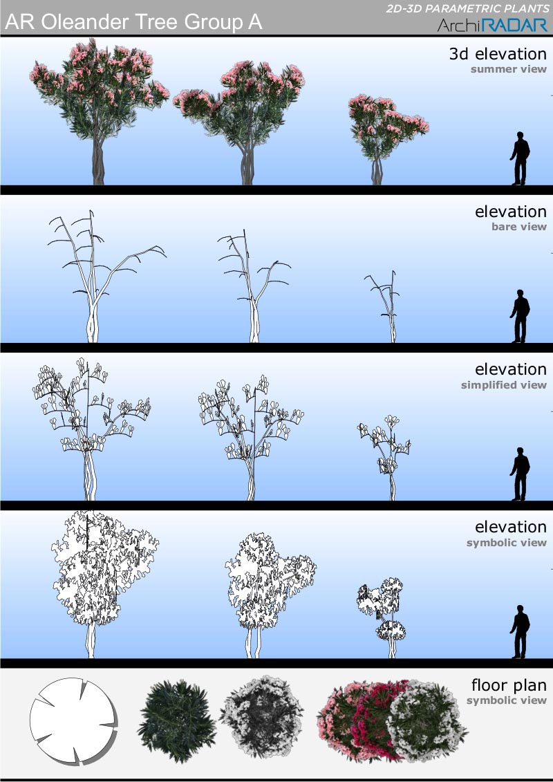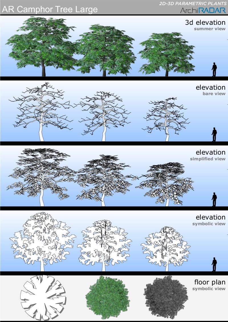 Gli oggetti sono realizzati con un basso numero di poligoni, hanno un fattore di crescita reale in base alla dimensione e inoltre hanno una corrispondente vista simbolica semplificata in prospetto e sezione.