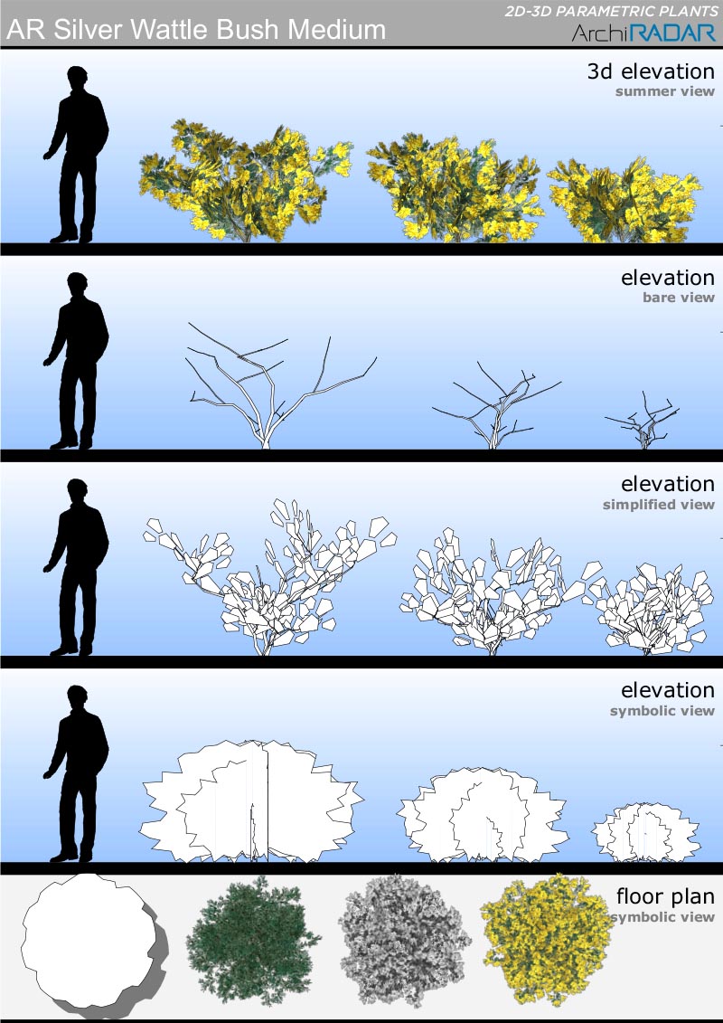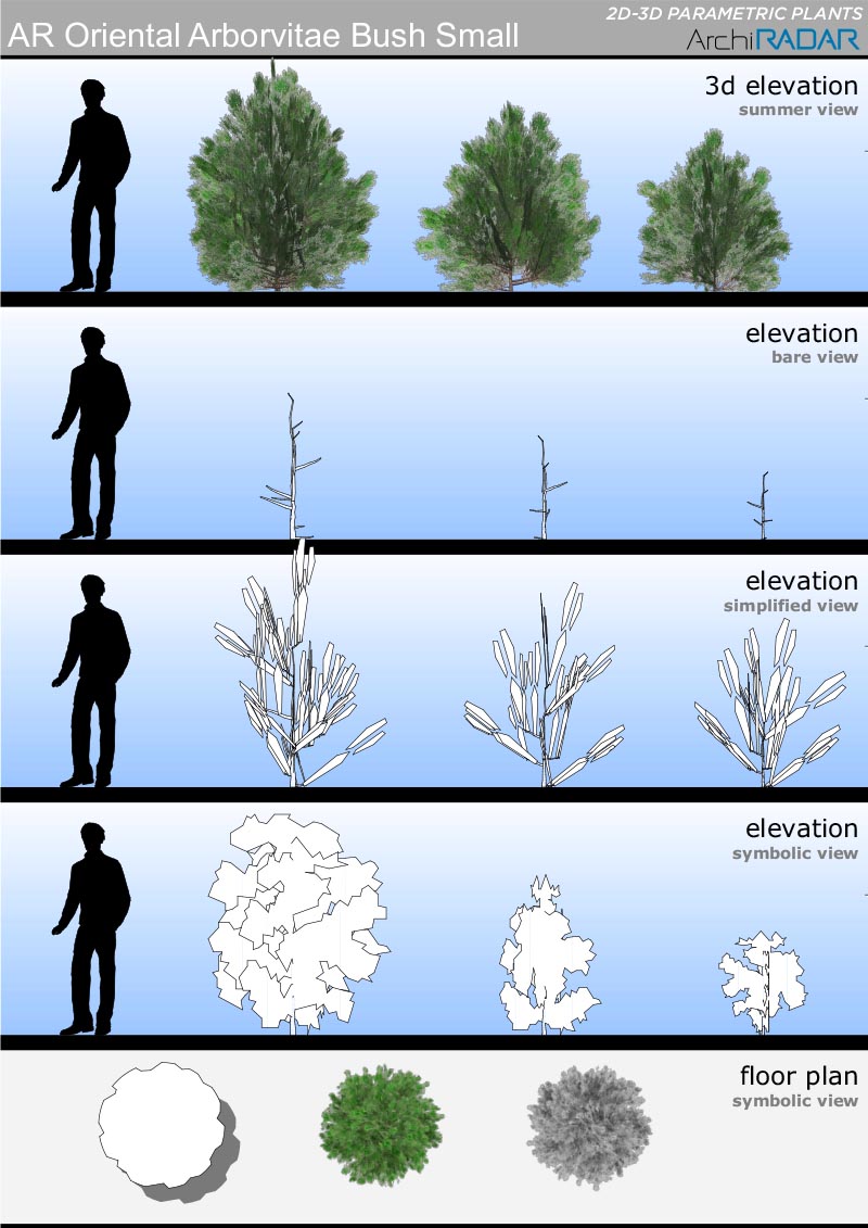 Gli oggetti sono realizzati con un basso numero di poligoni, hanno un fattore di crescita reale in base alla dimensione e inoltre hanno una corrispondente vista simbolica semplificata in prospetto e sezione.Ottimizzati infine per BIMX.