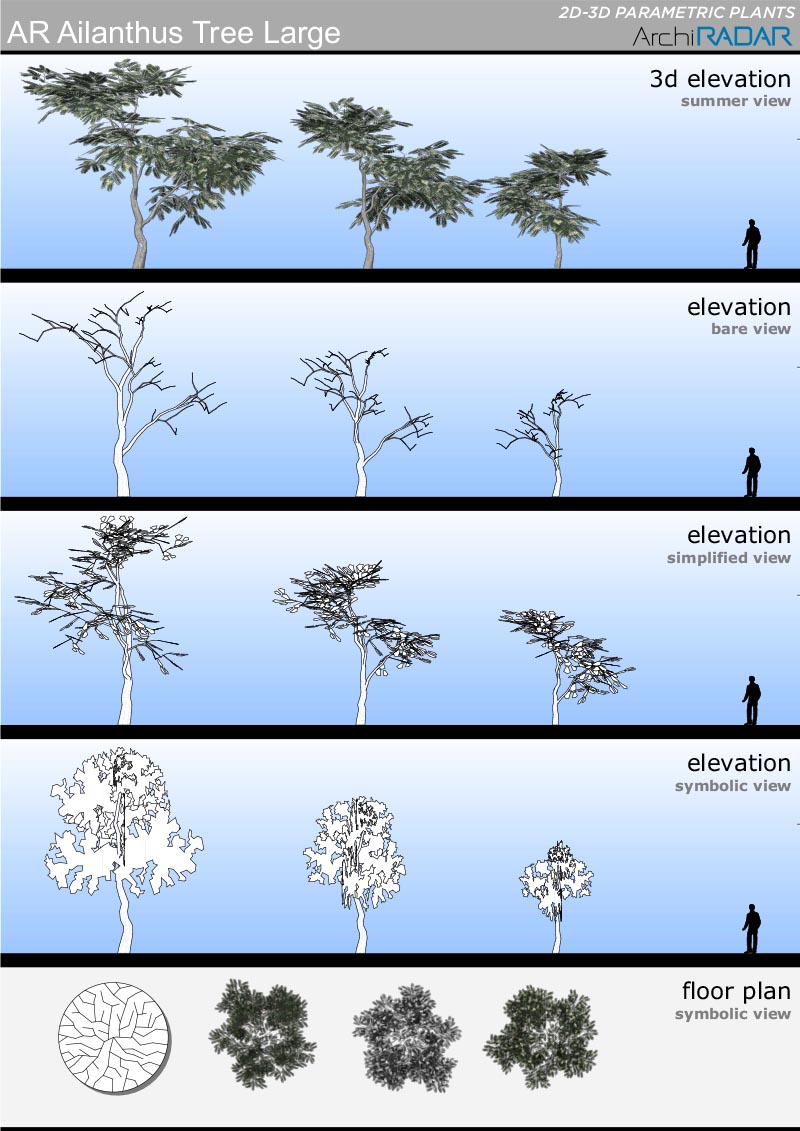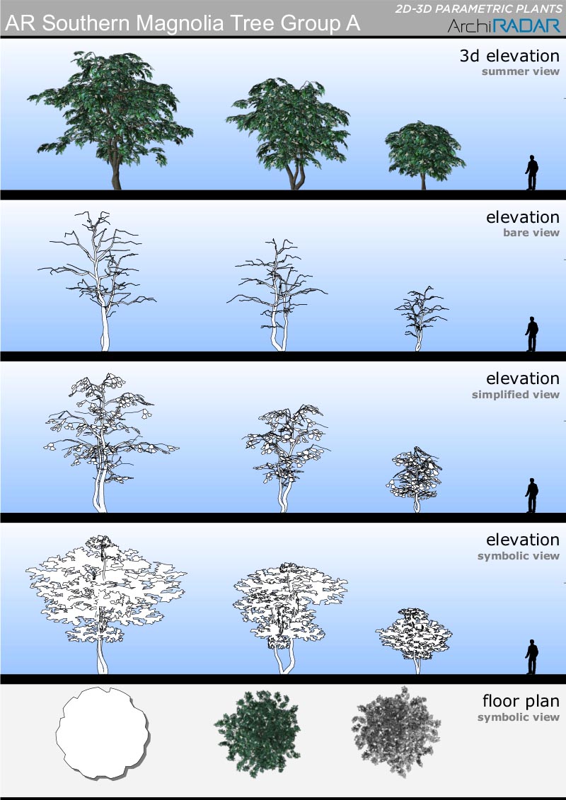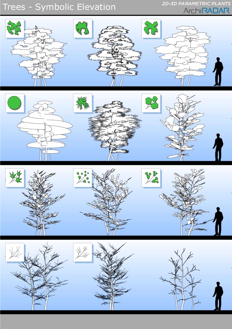 Opzioni disponibili all'interno degli oggetti:- Fattore di crescita reale- Vista simbolica in prospetto e sezione- Simbolo 2D con ombre- Simbolo 2D realistico- Livelli di dettaglio 3D- Opzione vento nei filmati- Stagioni (non per i sempreverdi)