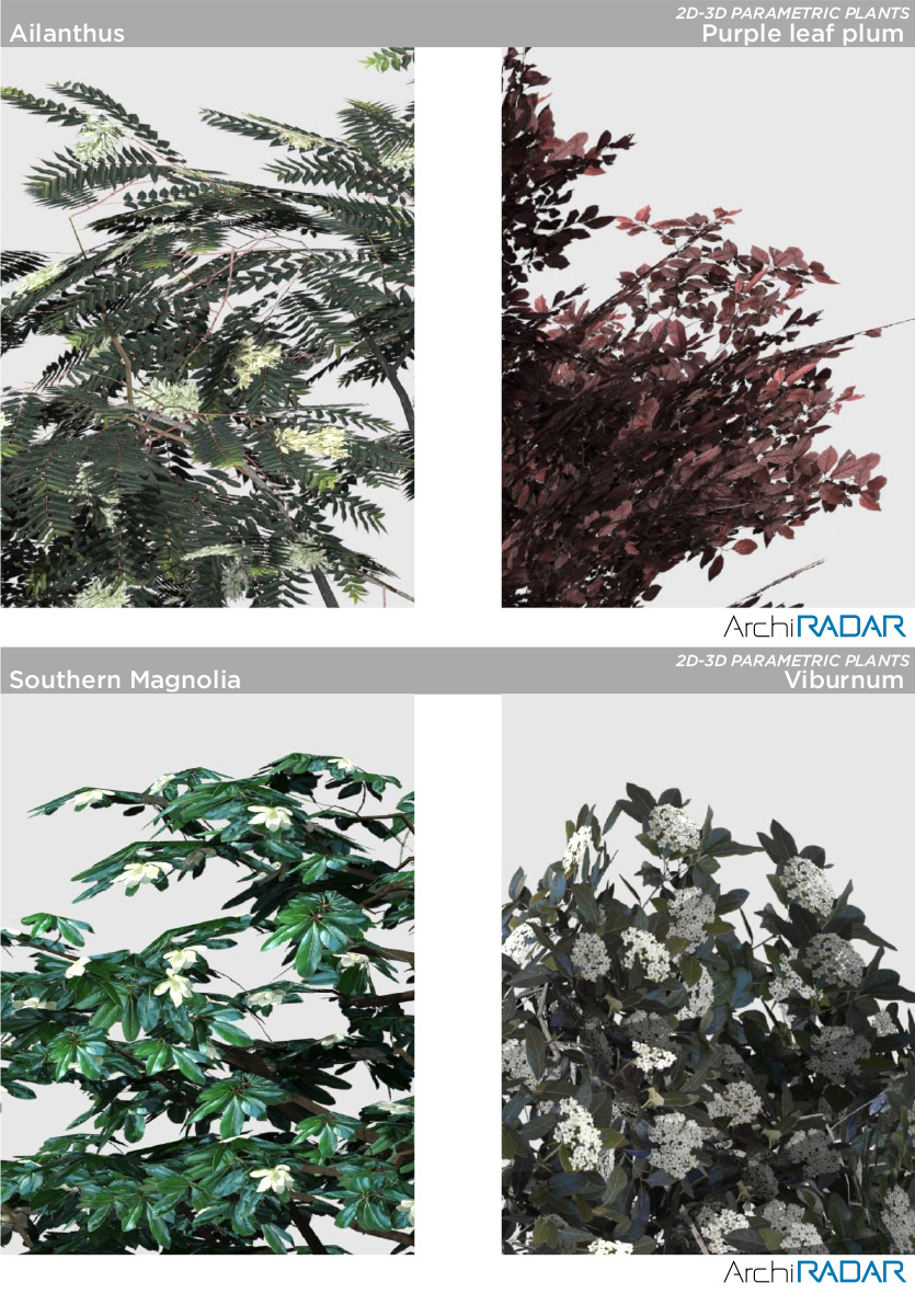 17 Modelli 3D di piante diverse, compatibili con ArchiCAD 16 o superiore e ottimizzate per CineRender.