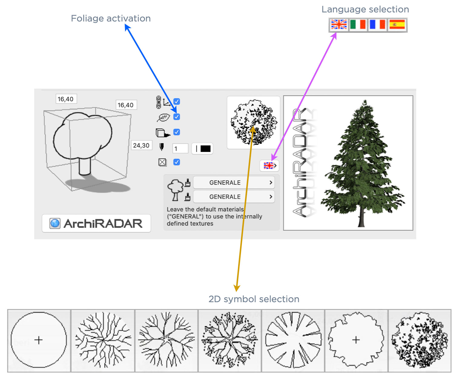 Infine, per ogni specie c'è un oggetto "Albero Random" che permette, con un semplice click, di inserire nel progetto un albero sempre diverso per evitare le ripetizioni.